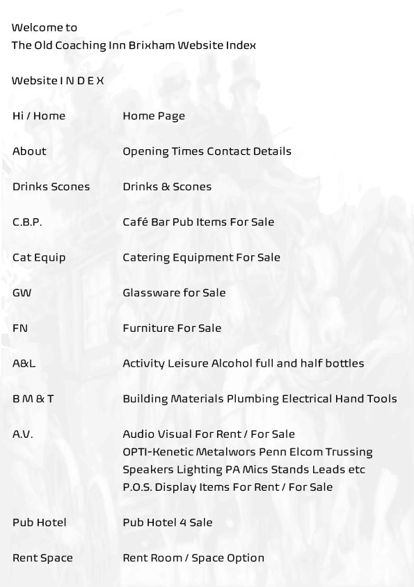 The image below is a page index, a list of Cafe Bar Pub items we are selling to clear the decks as it were.