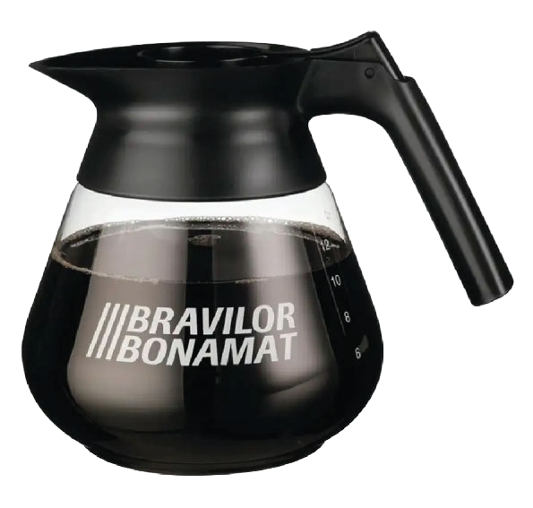 Bravilor coffee jug made from durable glass, holds up to 1.7 liters, perfect for serving hot beverages.